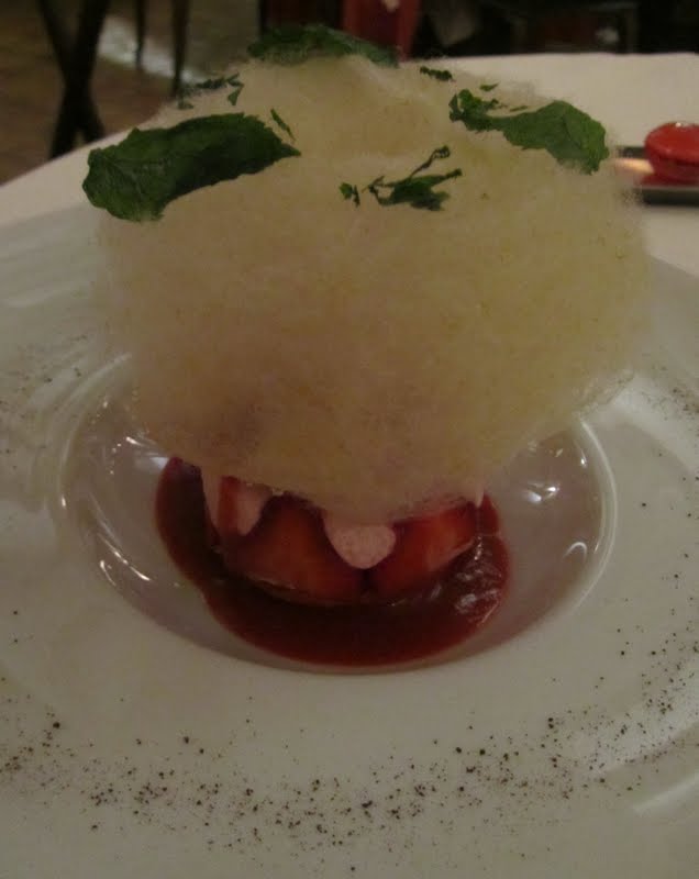 – enfin un dessert exceptionnel à mon goût : le carrousel de fraises et crème brûlée à la réglisse, parfait à la menthe et coulis au poivre de Sichuan : c’était divin…