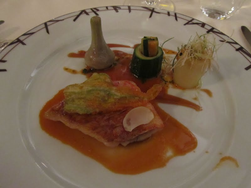– poisson : un filet de rouget poêlé, son jus acidulé au vinaigre de citron et légumes farcis en trois façons