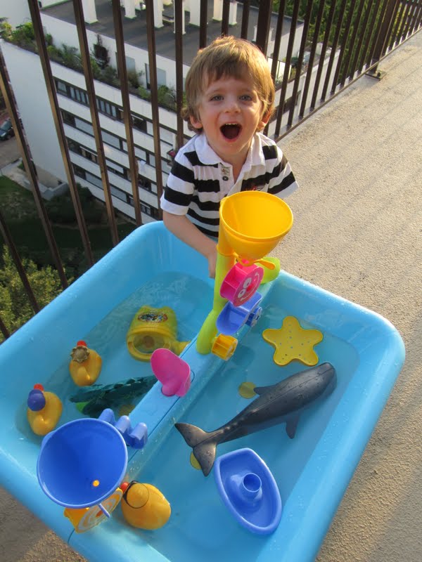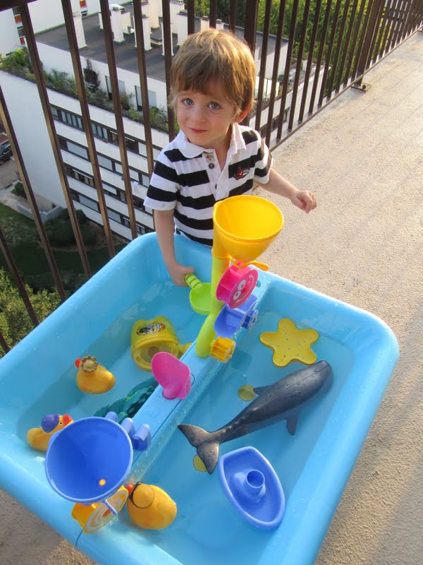 j'ai le même table, mon loulou s'éclate ! (mais effectivement, ils sont bien "dressés" pour pas jeter les jouets en bas… le mien adore mettre tous ses ballons dans la piscine quand il n'y est pas… après il n'en a plus, il râle! c'est inverse qd il est dedans, évidemment !)