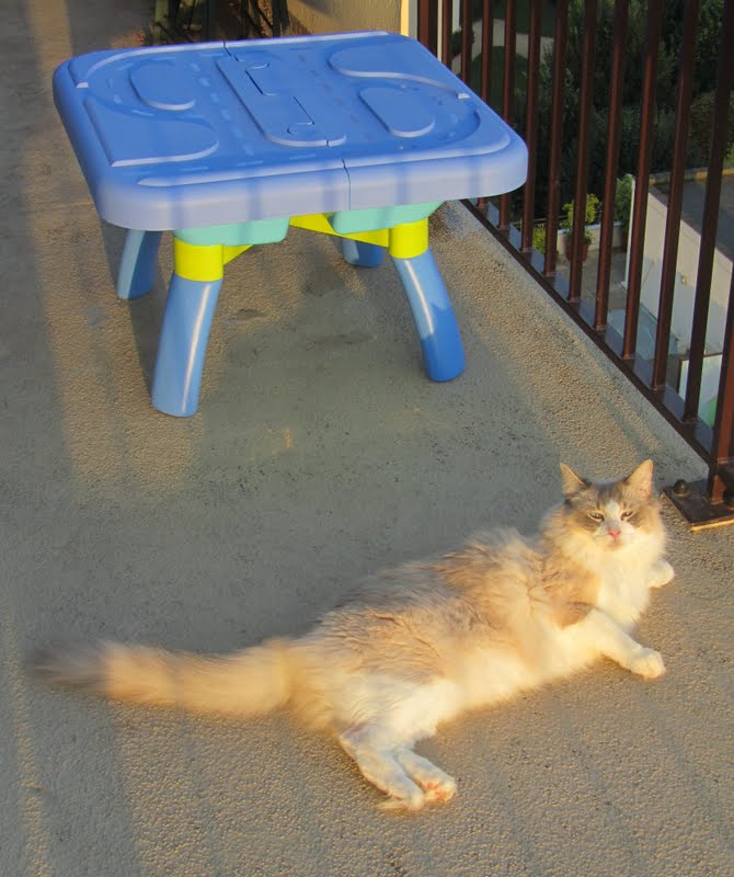 @ mistinguett : et non pas de jouets jetés à travers les barreaux ; ils sont restés très sages ! S'ils m'avaient fait ça une fois, j'aurais décalé la table sur la partie de la terrasse où on a un mur 🙂